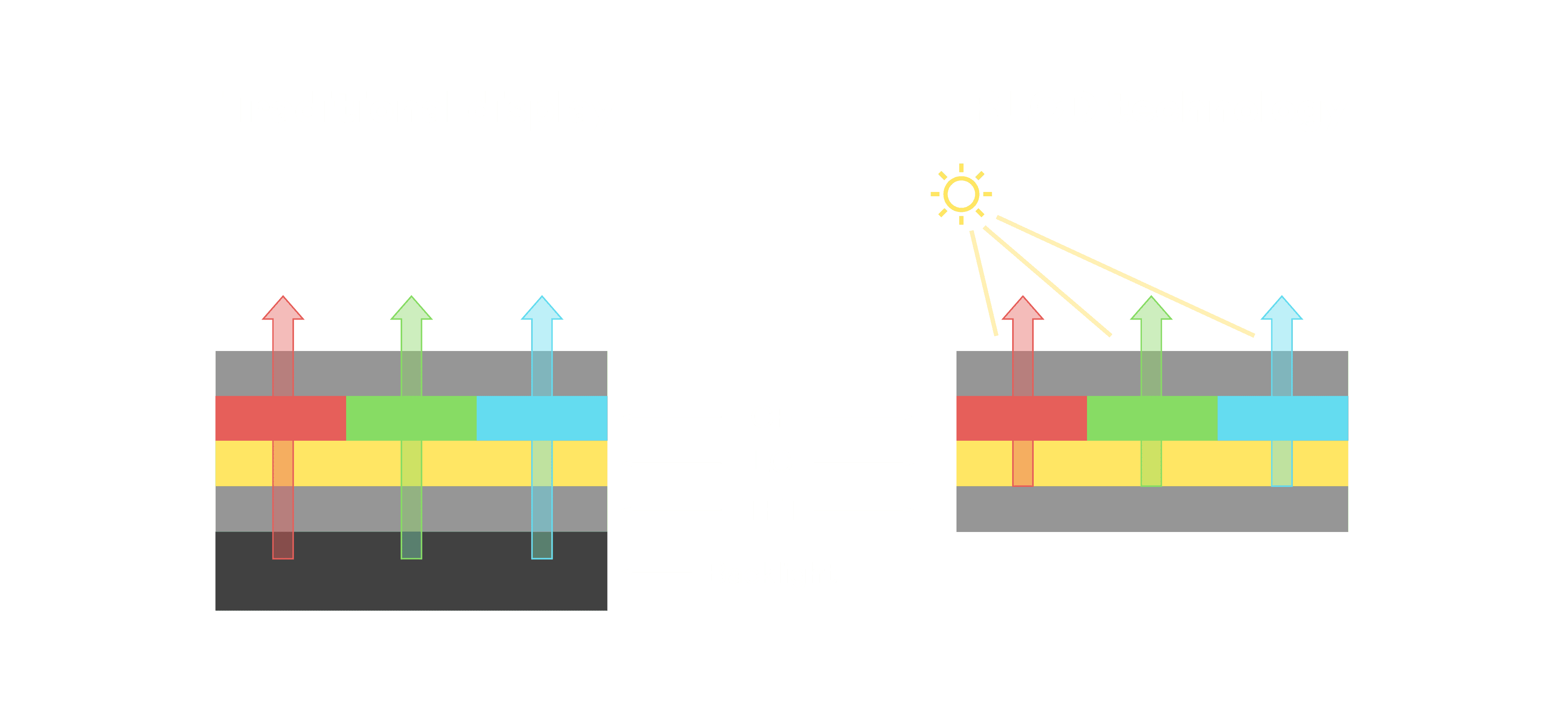 与传统需搭配背光单元的液晶显示相比,,,反射式液晶技术不仅更省电、、、更轻薄,,,,且即便在艳阳下仍能清晰显示。。此外,,,少了背光单元,,,也大幅降低了 LED 蓝光伤害眼睛的疑虑。。。。