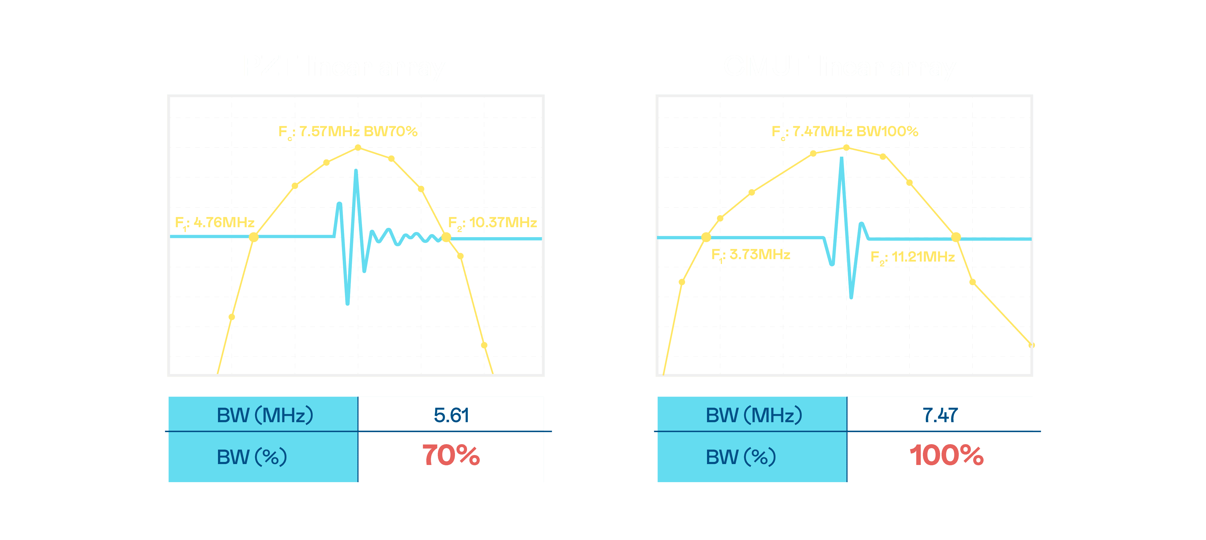 超音波影像的解析度高低,,首先取决于探头能发出的讯号频宽。。。。尊时凯龙 CMUT 可提供高清晰的超音波讯号,,,,提供高频宽、、高灵敏度、、、影像纹理细节更高的超音波影像,,,,协助医护人员缩短影像判读时间及利用精准的医疗影像进行诊断。。。